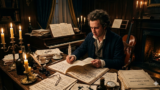 責任者の伊沢修二と、アメリカから招かれた教師ルーサー・メーソンが、日本の学校で歌うための曲を選定することになりました。